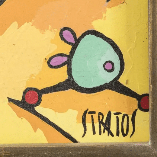 Savoir reconnaître la signature de Charles Stratos est essentiel pour authentifier une œuvre de cet artiste contemporain connu pour ses compositions abstraites dynamiques, construites autour de grands aplats colorés, de lignes gestuelles et de contrastes marqués. Charles Stratos signe la majorité de ses peintures et œuvres sur papier de son nom « Charles Stratos » ou plus simplement « Stratos », généralement accompagné de la date d’exécution. Sa signature est le plus souvent apposée en bas de la toile ou au verso, à la peinture ou au feutre, dans une écriture cursive ample et lisible, en cohérence avec l’énergie picturale de ses compositions. Sur certaines œuvres emblématiques — notamment ses grandes toiles abstraites aux structures rythmiques et ses séries chromatiques — la signature reste volontairement discrète afin de préserver l’équilibre visuel de l’ensemble. On rencontre également, sur quelques pièces, des annotations manuscrites au revers précisant le titre ou la période de création. Face à un marché où circulent des œuvres attribuées ou insuffisamment documentées, faire vérifier la signature d’un Charles Stratos par un expert qualifié reste indispensable. Sur Estimon’Objet, nos spécialistes de l’art moderne et contemporain vous accompagnent dans l’identification, l’authentification et l’estimation de vos œuvres signées Charles Stratos, qu’il s’agisse d’une toile, d’un dessin ou d’une œuvre sur papier.