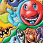 Des personnages hybrides : figures extraterrestres, créatures grotesques et visages souriants aux allures cartoon, devenus sa signature visuelle.