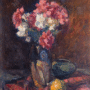 « Nature morte à la nappe rouge », huile sur toile, 55 x 46 cm, vendue 12 800 €
